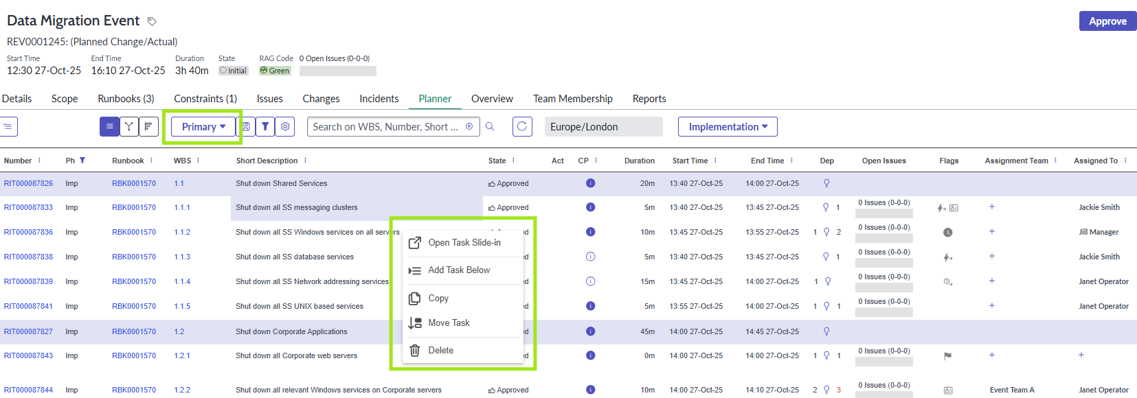 Once the Runbooks are added to an Event, edits can still be made across the stages and tasks. This can be done from the Event Planner or the individual Runbook Planner.