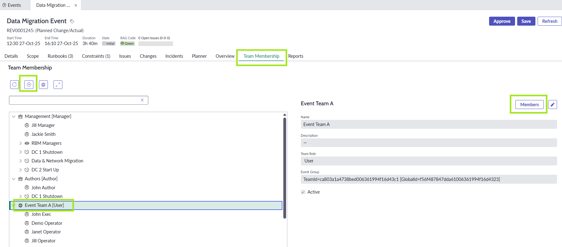Creating Team Membership at Event level enables those team members to be assigned to tasks across all of the Runbooks within the Event. A separate Team Membership can be created at Runbook level, in the same way as being outlined below, to give rights to users exclusively in single Runbooks within the Event.
