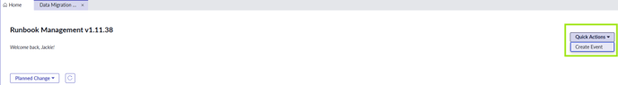 A dropdown called Quick Actions is also available on the top right hand of the page to allow a user to create a new Event from the Home Page.